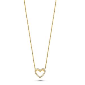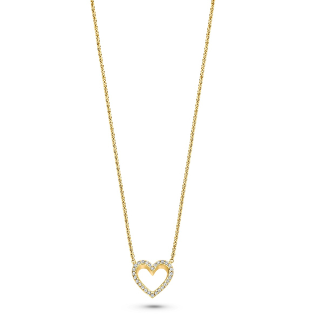 FJF Halskette Silber 925/- vergoldet mit Herz Zirk. weiß