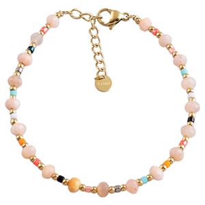 Naturstein Armband Stahl vergoldet beige-bunt 19 cm