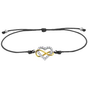 Julie Julsen Damenschmuck Julie Julsen Armband INFINITY HEART Silber rhodiniert, 20 Zirkonia bicolor mit Stoffband schwarz Ref.-Nr.: JJBR34150SG"