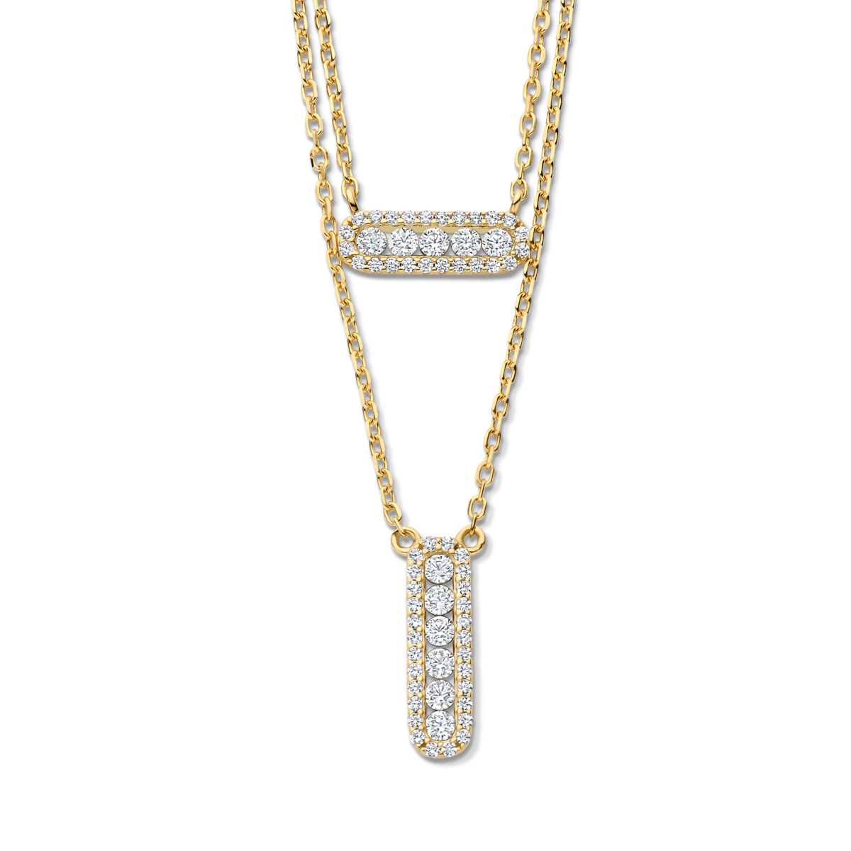 Naiomy Halskette Silber 925/- vergoldet Doppelreihig mit Zirkonia weiß