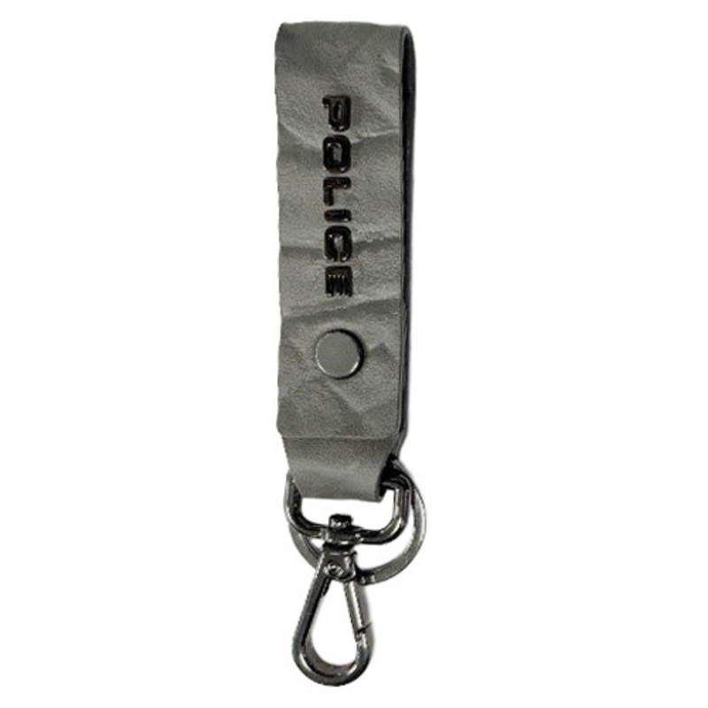 Police Schlüsselanhänger Schlaufe Leder grau mit Schriftzug