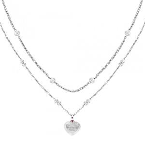 Tommy Hilfiger Halskette doppelreihig Edelstahl mit Kugeln und Herz Anhänger