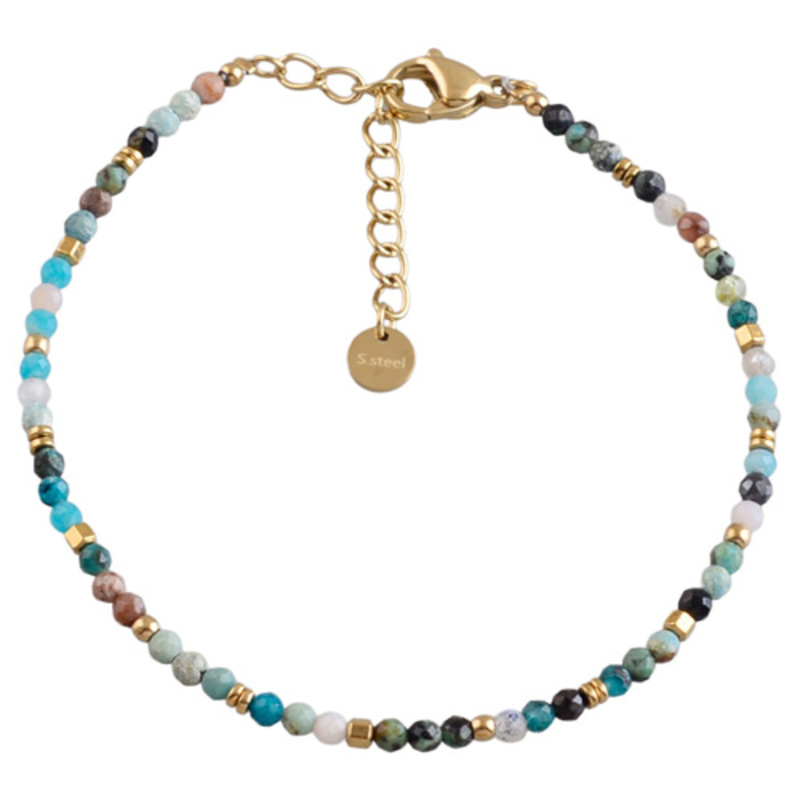 Naturstein Armband Stahl vergoldet türkis-bunt 19 cm