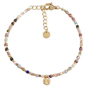 Naturstein Armband Stahl vergoldet bunt mit Blättchen 19 cm