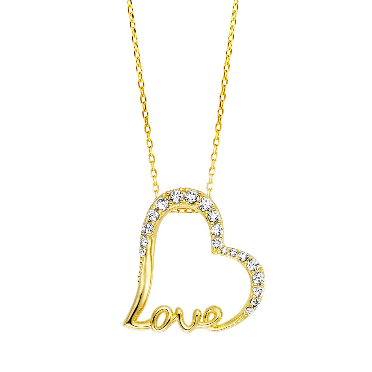 Julie Julsen Damenschmuck Julie Julsen Halskette HERZ Silber 925/- vergoldet mit Schriftzug ""LOVE"" Zirk. weiß Ref.-Nr.: JJNE34184G"