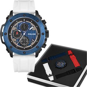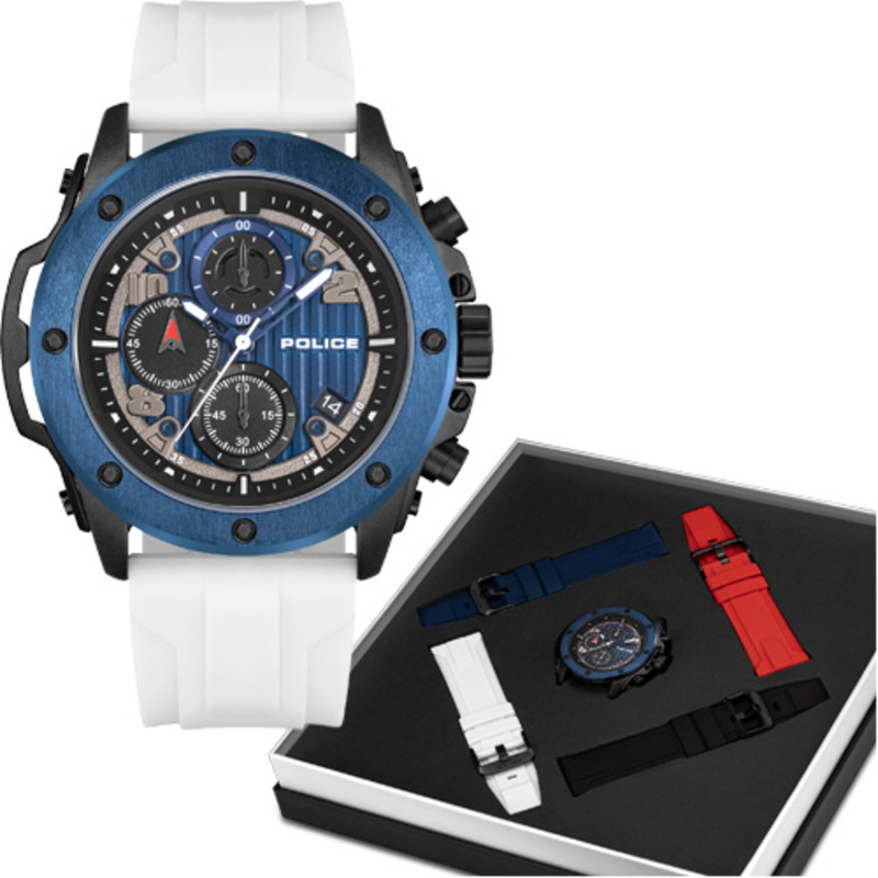 Police Herrenuhr CLOUT-SET schwarz blau und weißen Kautschukband