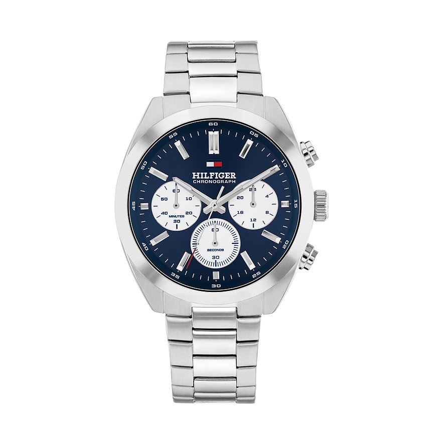 Tommy Hilfiger Herrenuhr Edelstahl Ziffernblatt blau Metallband